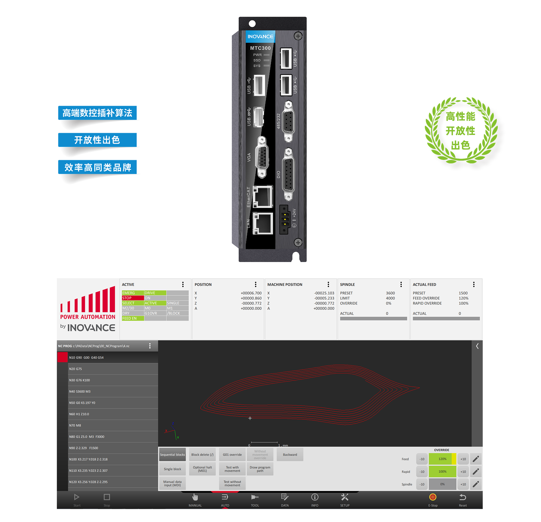 MTC300系列通用CNC控制器,是基于Intel X86處理器硬件平臺開(kāi)發(fā),高性能多軸軌跡插補的CNC控制器,支持EtherCAT總線(xiàn)。軟件搭載PA CNC數控系統平臺,具備強大的二次開(kāi)發(fā)能力,支持內核CC接口、HMI接口、PLC接口的二次開(kāi)發(fā),支持通用G代碼、集成曲率優(yōu)化、誤差補償等強大的運動(dòng)控制算法,適用于以強插補為主的數控系統。