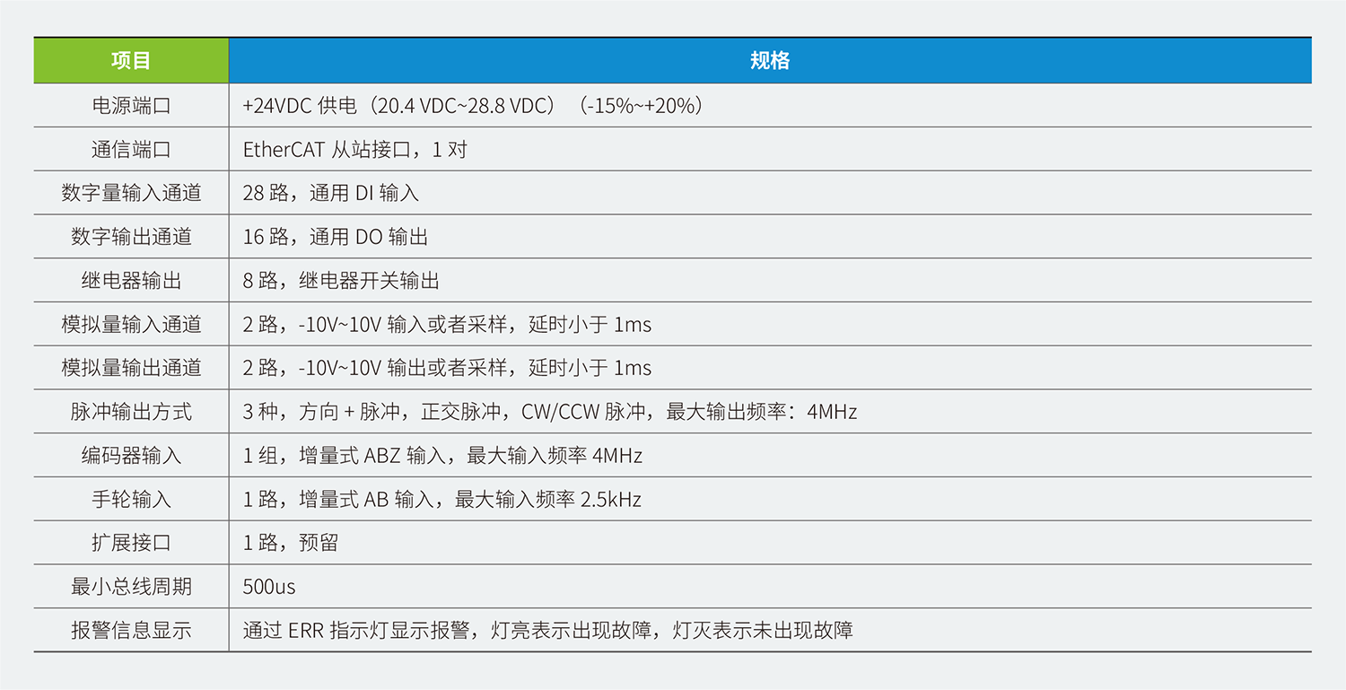 MTIO-2824RND是一款多功能遠程IO模塊,采用EtherCAT總線(xiàn)通信,系統集成數字量輸入輸出、模擬量輸入輸出、手輪輸入、脈沖輸出為一體,性能出色,構建和維護簡(jiǎn)單,適應于多種應用場(chǎng)景。