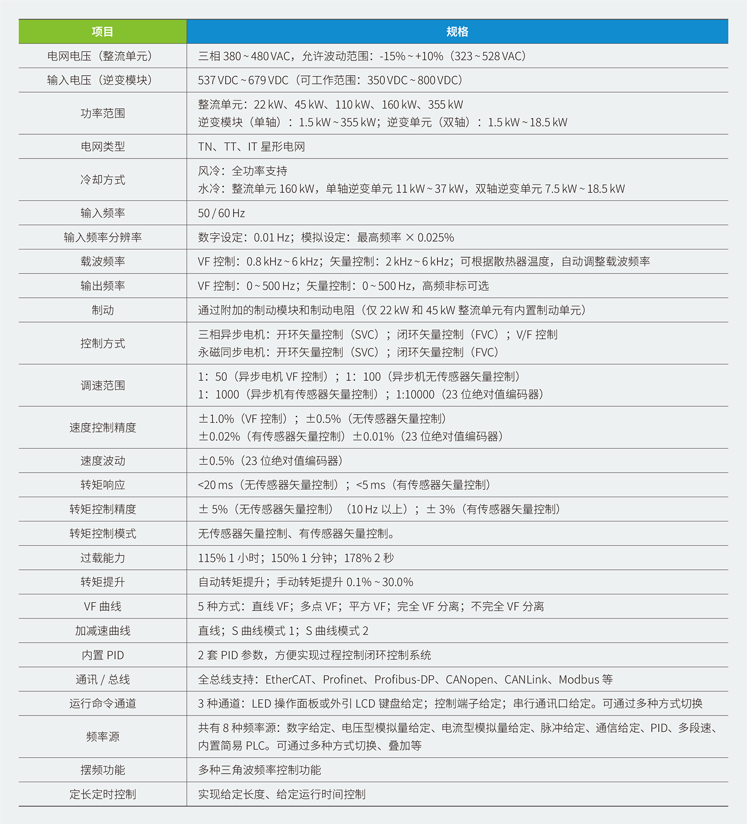 1、MD810 功率范圍:整流單元 22 ~ 355 kW,逆變單元1.5 ~ 355 kW,具備單雙軸兩個(gè)版本,雙軸二合一性?xún)r(jià)比更高
