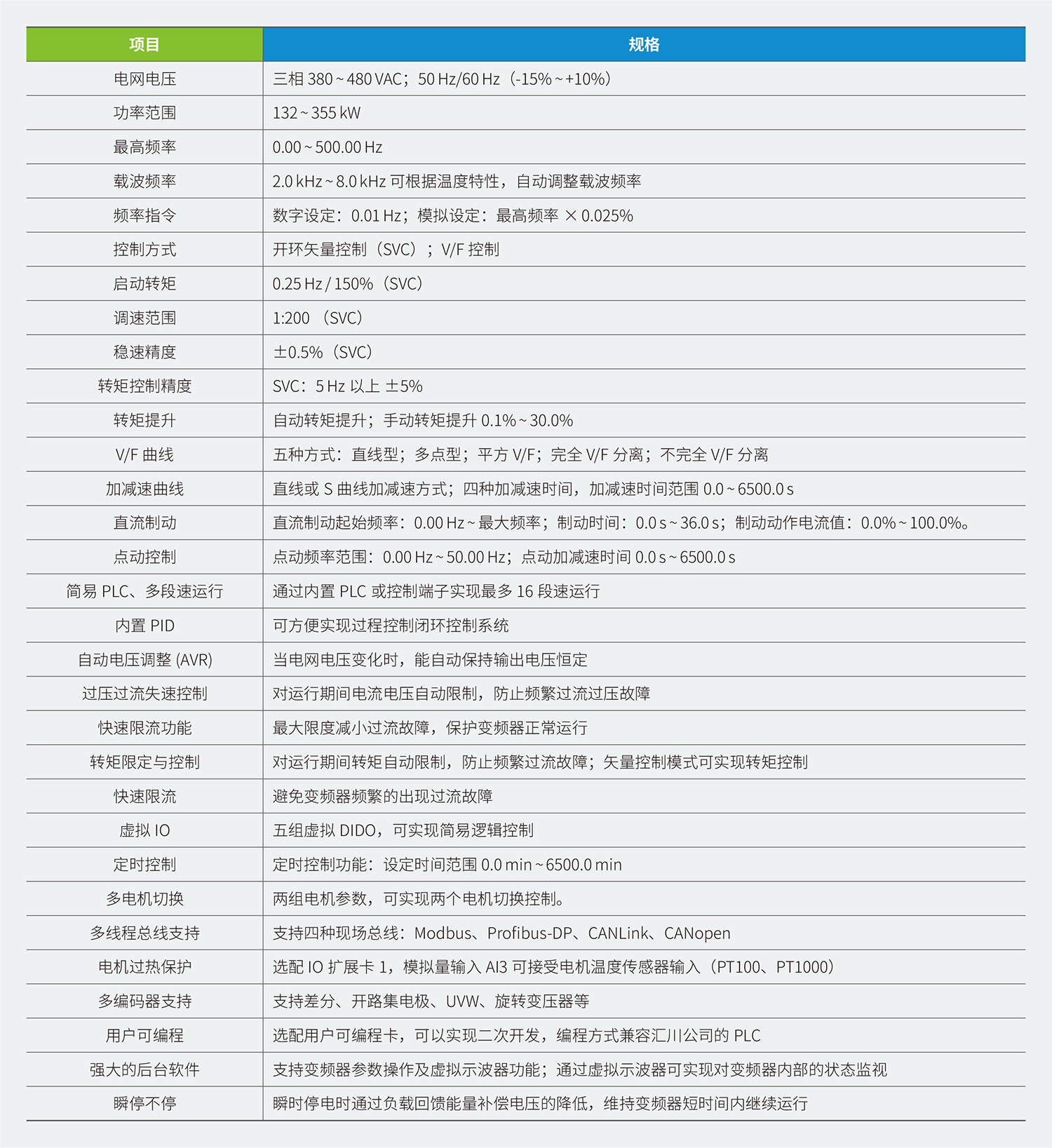 CP320 系列變頻器是一款通用高性能電流矢量變頻器,主要用于三相交流同步電機的SVC 控制,采用高性能的矢量控制技術(shù),低速高轉矩輸出,具有良好的動(dòng)態(tài)特性、超強的過(guò)載能力、增加了用戶(hù)可編程功能及后臺監控軟件,支持擴展Modbus 通信功能。