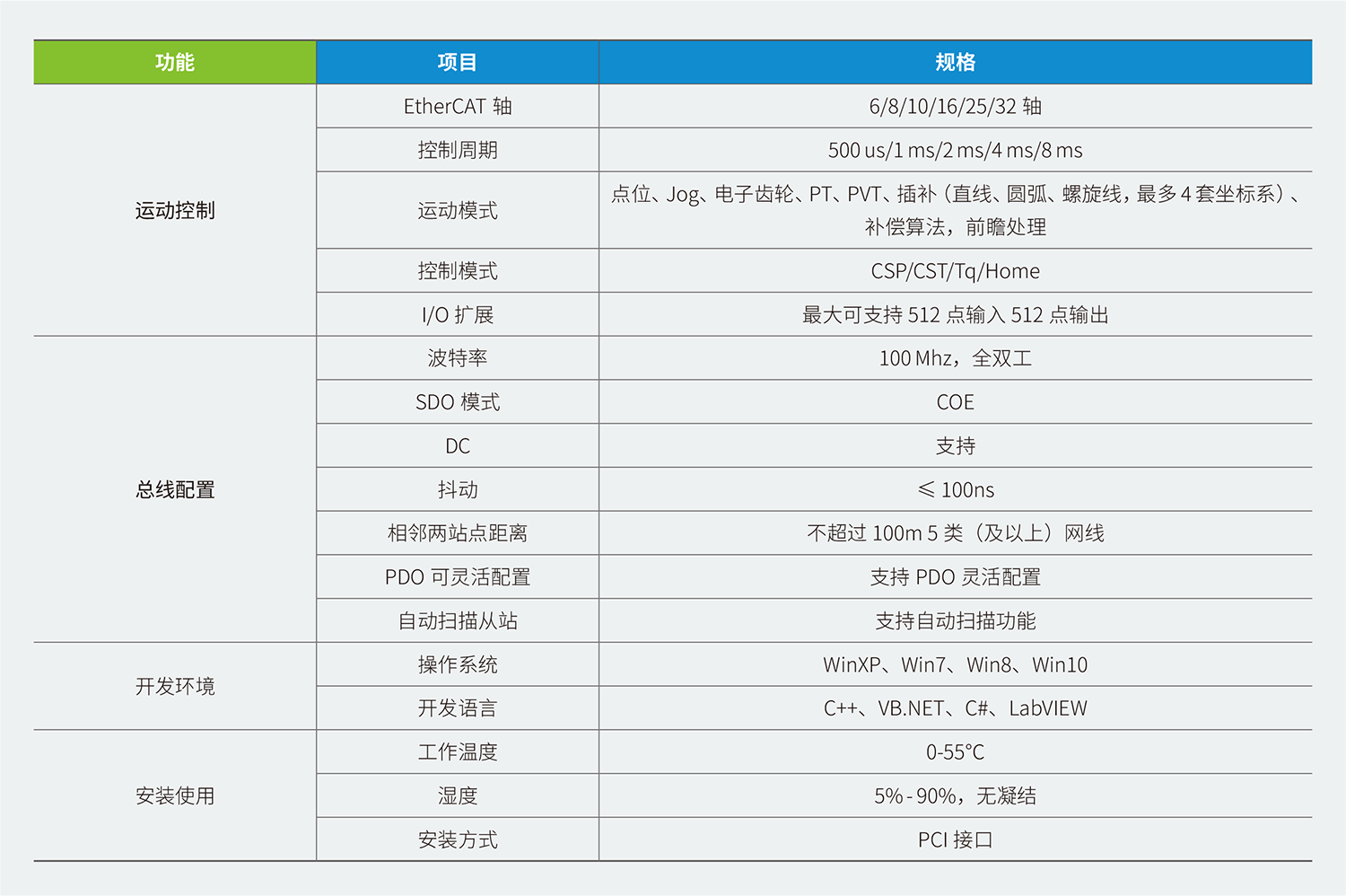 IMC30G-E 系列產(chǎn)品是匯川技術(shù)自主研制的高性能EtherCAT 網(wǎng)絡(luò )型運動(dòng)控制器(卡),同時(shí)兼容脈沖軸的控制;IMC30G-E 支持點(diǎn)位/JOG、插補、多軸同步、電子齒輪、高速位置比較輸出、PWM 等全面的運動(dòng)控制功能,具備高同步控制精度(主站和從站抖動(dòng)均在100 ns 以?xún)龋?/span>