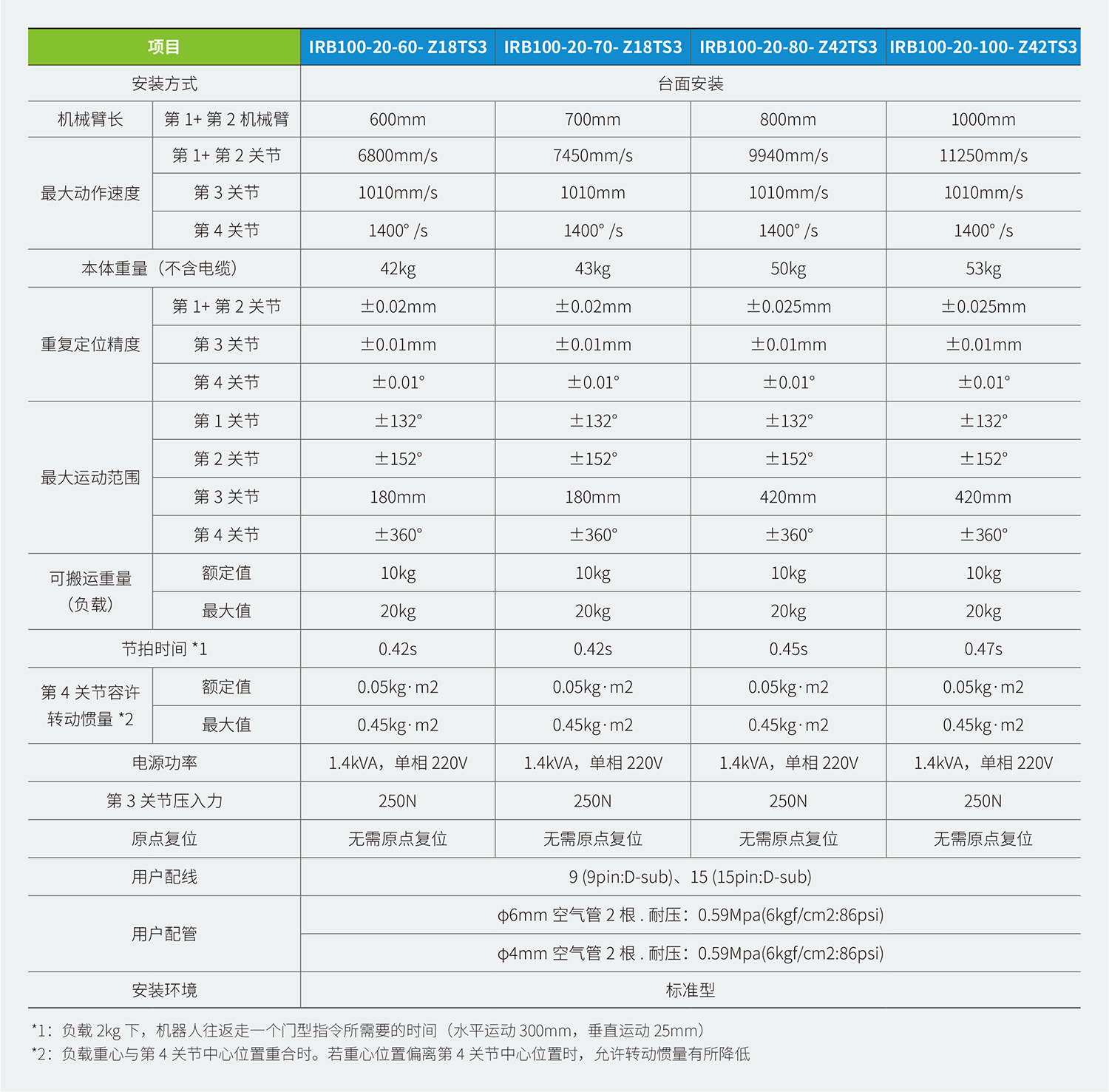 匯川IRS100-20 系列SCARA 機器人產(chǎn)品是IRS100 系列SCARA 機器人產(chǎn)品在大負載應用方面的延伸,其最大臂長(cháng)可達到1m,最大負載可達20kg,具有高速度、高精度、高效率等特點(diǎn),配備高性能IRCB500系列控制G柜系統,具有很強的易用性和可靠性,IRS111-20 系列SCARA 機器人手臂提供600mm、700mm、800mm 和1000mm 臂長(cháng),Z 軸行程有180mm 和420mm 可選,提供臺面安裝方式,廣泛應用于大負載情況下的大型構件取放、搬運、機械組裝等場(chǎng)合。