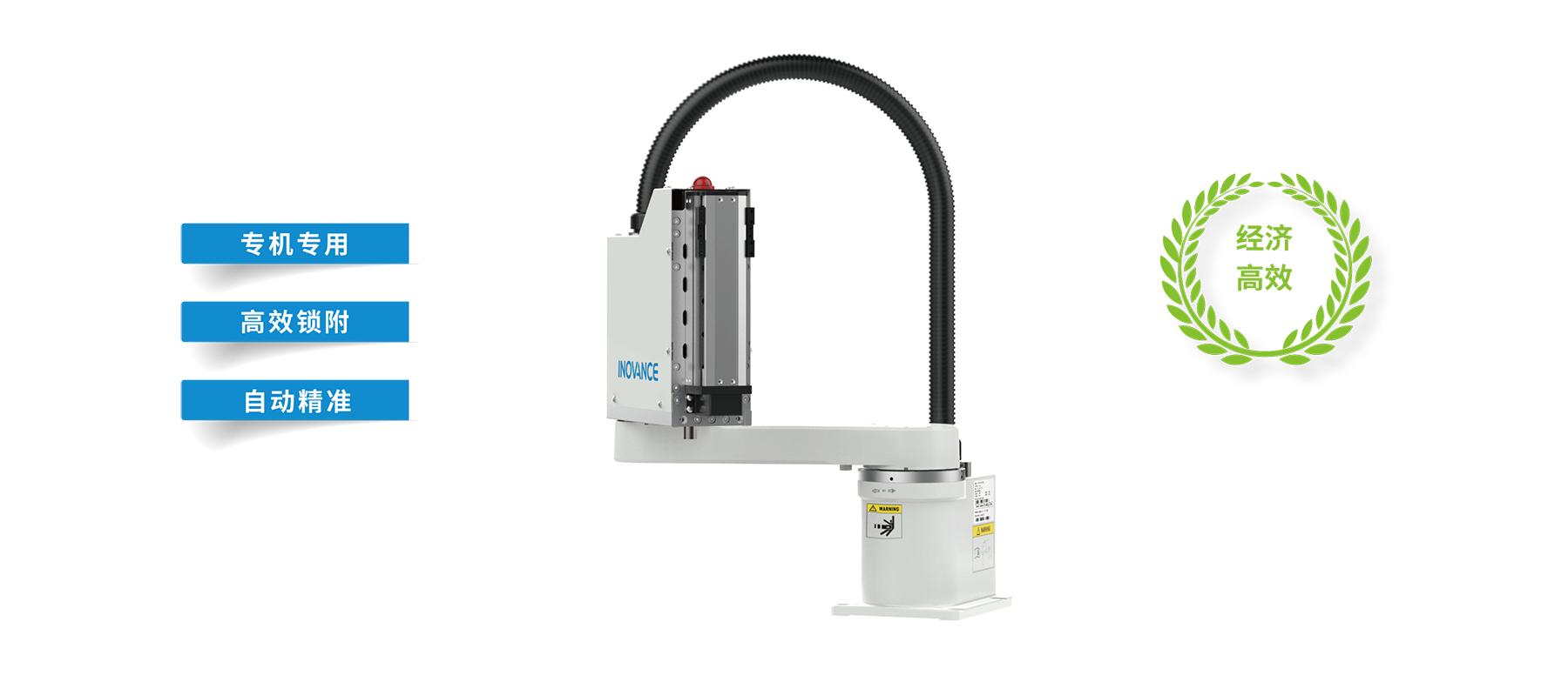 IRS10 系列鎖付機器人是匯川技術(shù)針對3C 行業(yè)的鎖螺絲應用而推出的SCARA 機器人專(zhuān)機,第三關(guān)節采用滑臺模組傳動(dòng)方式,具有慣量小、剛度大、速度快、精度高、成本低等特點(diǎn)??梢耘浜隙喾N鎖付機構使用,滿(mǎn)足定扭矩或定角度精確擰緊的要求,廣泛應用于 3C 電子、電子玩具、通訊設備、家用電器、儀器儀表等行業(yè)螺絲的高效裝配。