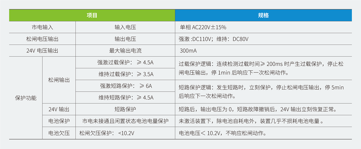 3、具有松閘輸出過(guò)載、短路保護,電池欠壓保護功能