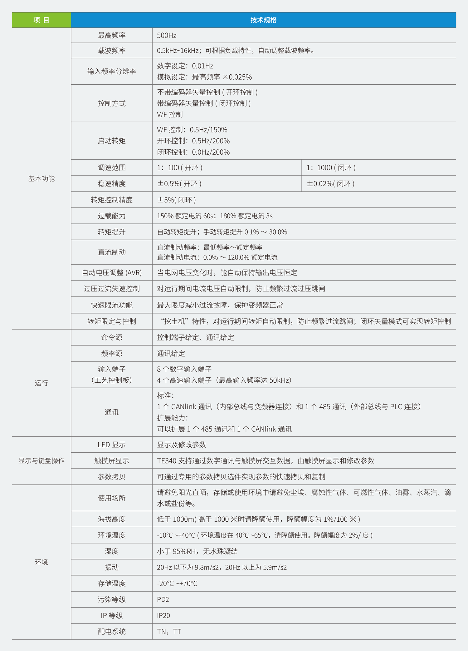 TD340/TE340 粗紗機專(zhuān)用變頻器是匯川技術(shù)公司針對紡織粗紗機開(kāi)發(fā)的一款高性能電流矢量變頻器,主要用于控制和調節三相交流異步電機的速度。TD340/TE340 以高性能的矢量控制技術(shù)為基礎,針對紡織行業(yè)粗紗機定制了位置跟隨、斷電停車(chē)功能,低速高轉矩輸出,具有出色的動(dòng)態(tài)特性、超強的過(guò)載能力、增加了用戶(hù)可編程功能及后臺監控軟件,通訊總線(xiàn)功能,支持多種PG 卡等,組合功能豐富強大,性能穩定。