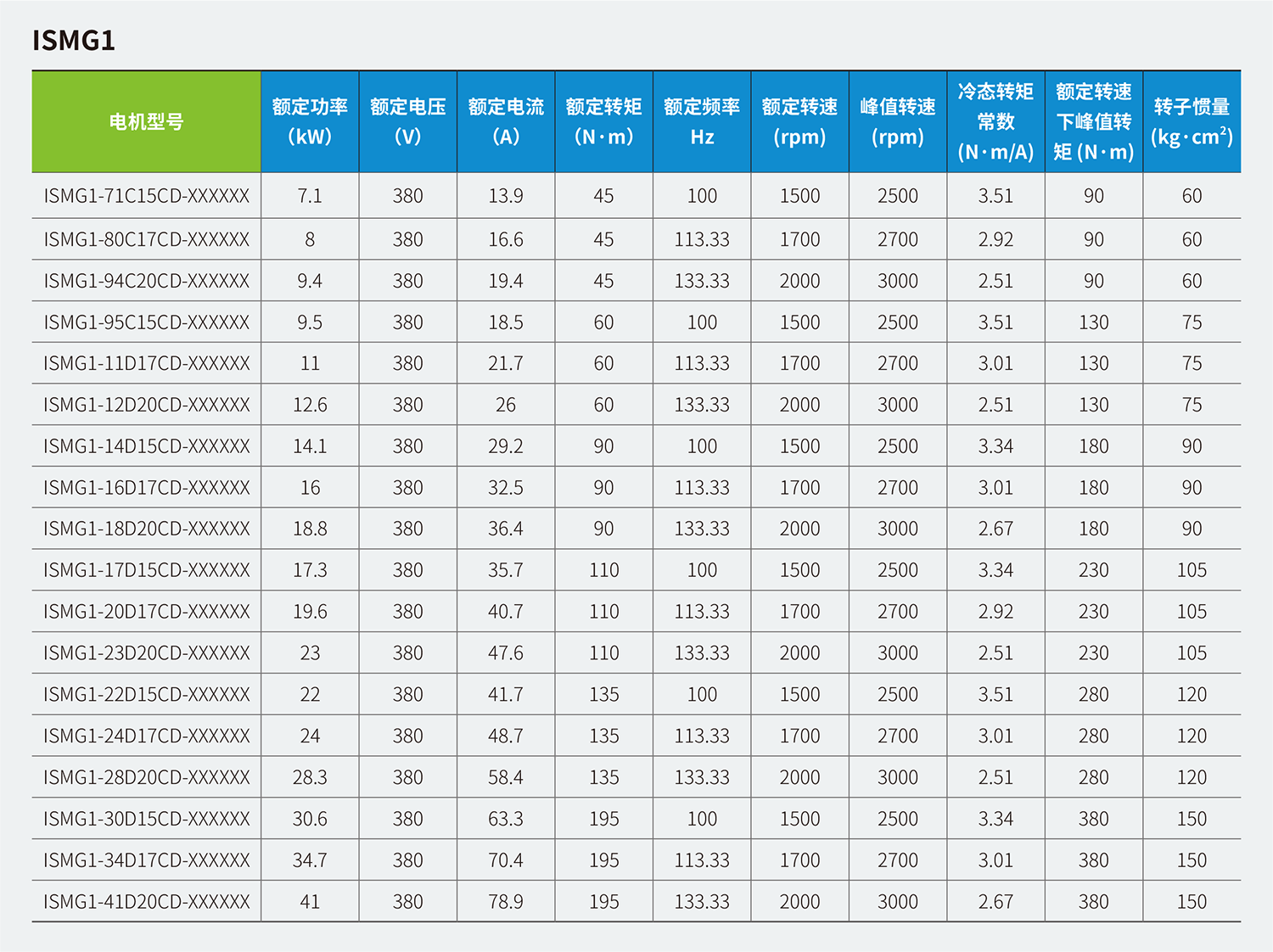 ISMG系列風(fēng)冷永磁伺服電機是一款通用大功率伺服電機,包含ISMG1/ISMG2兩個(gè)系列。標配23位絕對值編碼器,采用SPM轉子方案,具有低轉矩轉速波動(dòng)等出色的伺服性能;其中ISMG1系列包含帶制動(dòng)器的型號。